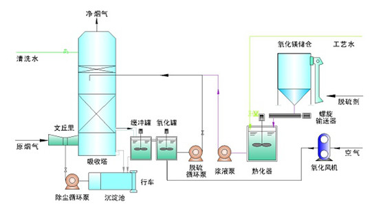 氧化鎂法用氧化鎂熟化后生成的乳液作為吸收劑吸收SO2,針對脫硫產(chǎn)物的處理方法不同又可分為回收法和拋棄法。拋棄法工藝流程簡單,操作環(huán)境清潔,應(yīng)用較多;回收法工藝流程復(fù)雜,能耗高,回收成本高,但能實現(xiàn)資源化利用。
